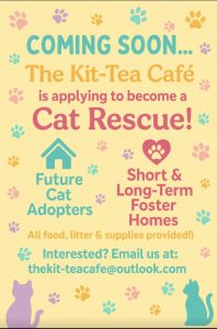 At the Kit-Tea Café we do not support the breeding of pedigree cats in our Café you’ll only ever find cats that have been rescued, rehomed or abandoned. We strongly believe that every cat deserves to be warm, cosy and go to sleep with a full tummy knowing they are loved and free from harm.